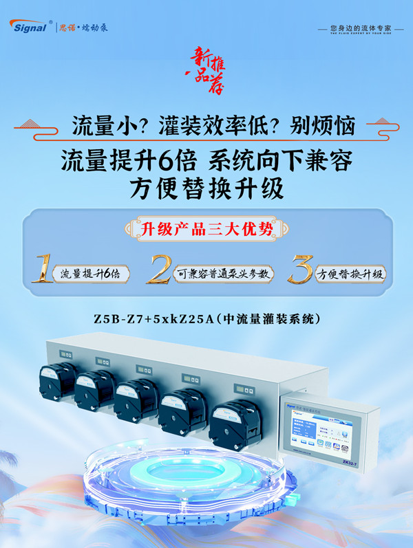 為滿足客戶對灌裝效率提升的需求,解決客戶對高流量分配的煩惱,為其帶來流體傳輸體驗,新品蠕動泵灌裝系統(tǒng)——Z5B-Z7+5XKZ25A重磅上市!