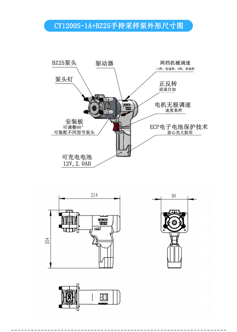 ●可裝配YZ15、YZ25、BZ15-14、BZ15-16、BZ25與KZ25等六種型號泵頭,適配多種規格軟管,流量范圍大,可靈活采樣。