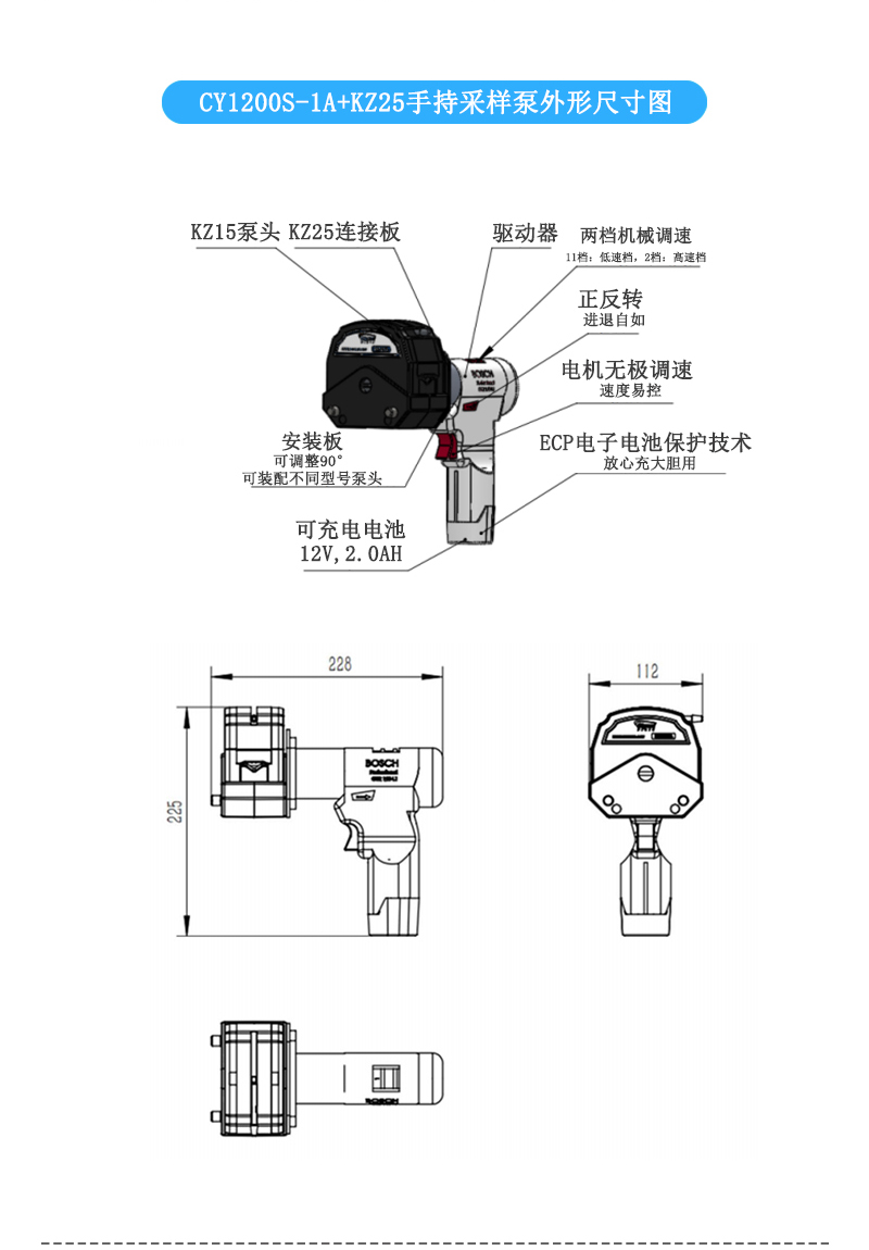●充電式電源,標配電池2塊,電壓12V續航時間長;適用于室內外流體采樣,應急傳輸或無電源的場所。