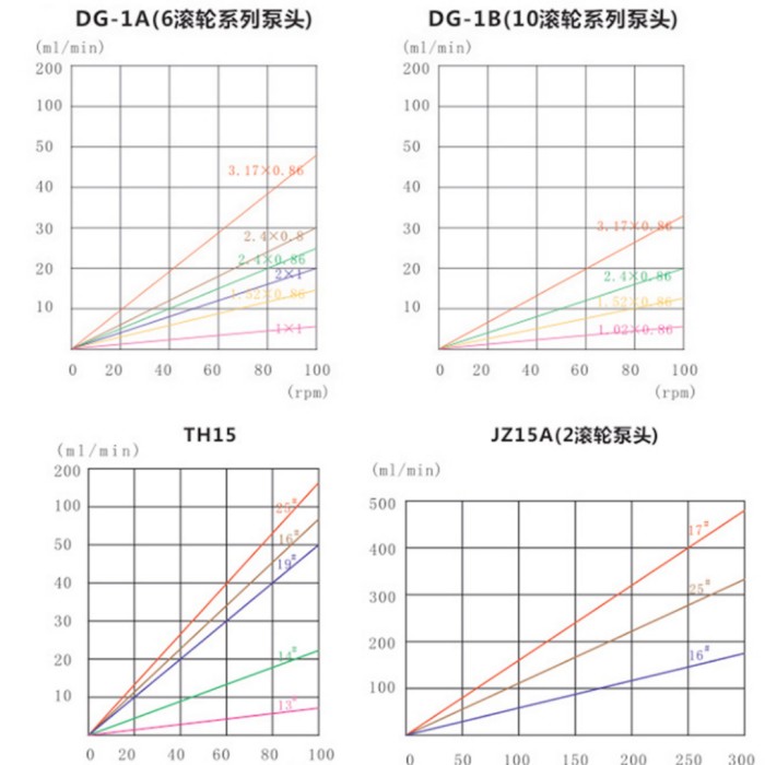 蠕動泵軟管參考流量曲線